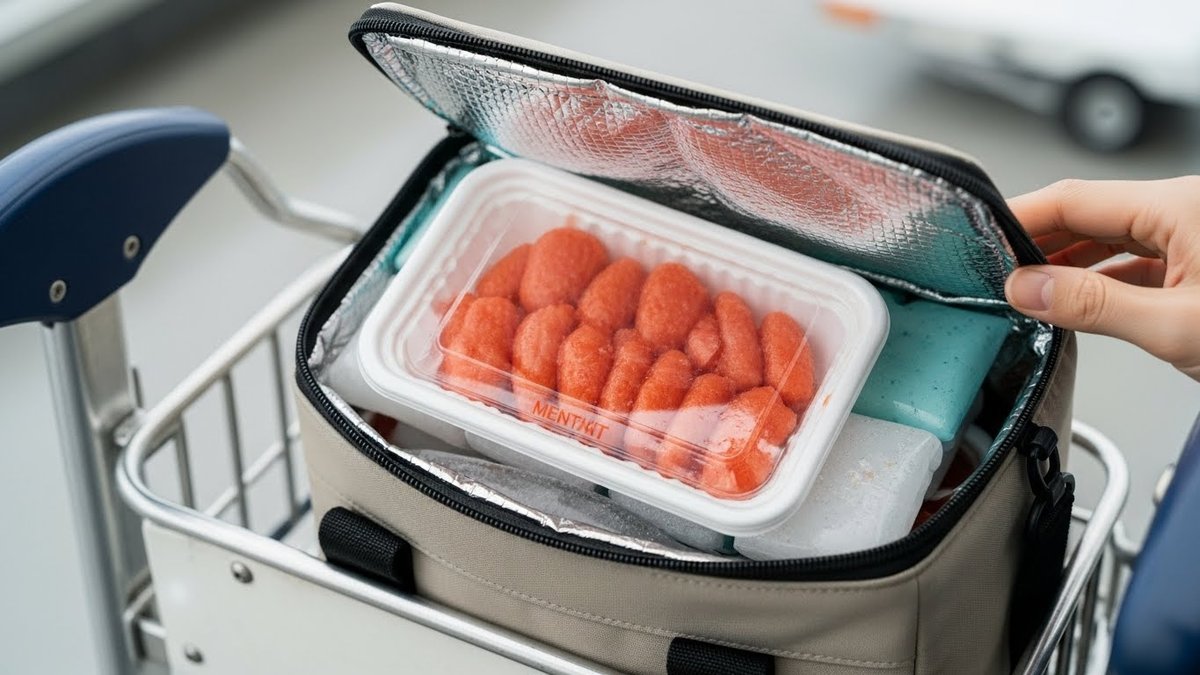 機内へ持ち込む際は液体類の制限を考慮しますが、明太子は固形物扱いとなるため国内線では通常問題ありません。ただし容器から汁が漏れないように密閉し、さらにビニール袋やジッパー袋で二重にして保冷剤と一緒に入れると安心です。国際線の場合は渡航先の検疫や機内持ち込み基準が異なるため、事前に航空会社や渡航先の規定を確認してください。