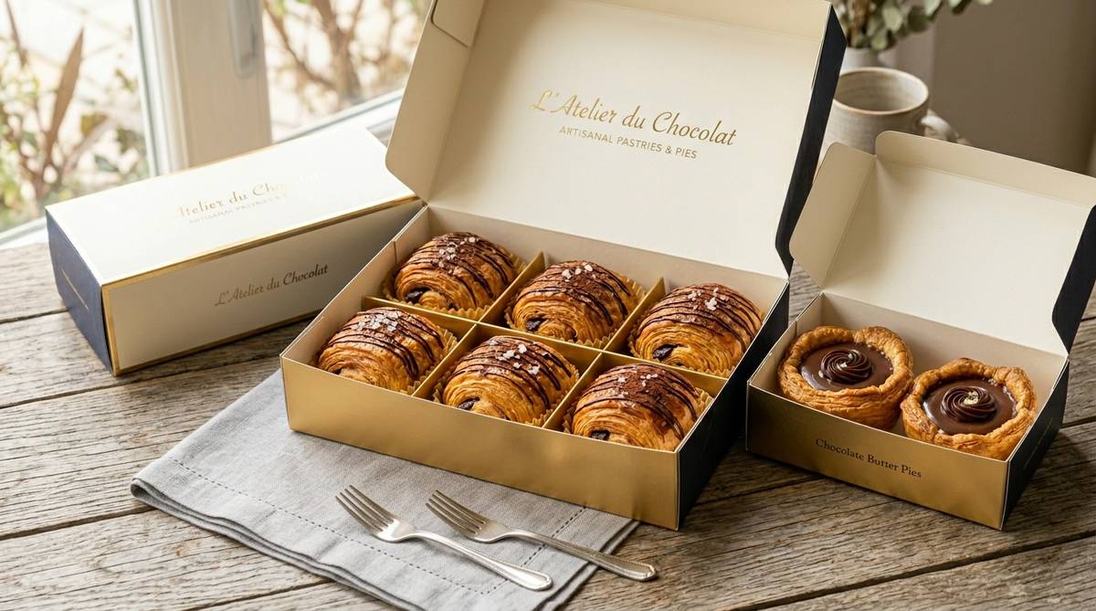 もう一つの人気商品「ショコラバターパイ」は、幾層にも重なったパイ生地のサクサク感が魅力です。4個入りは小回りが利くサイズで、お試しでの購入にも向いています。