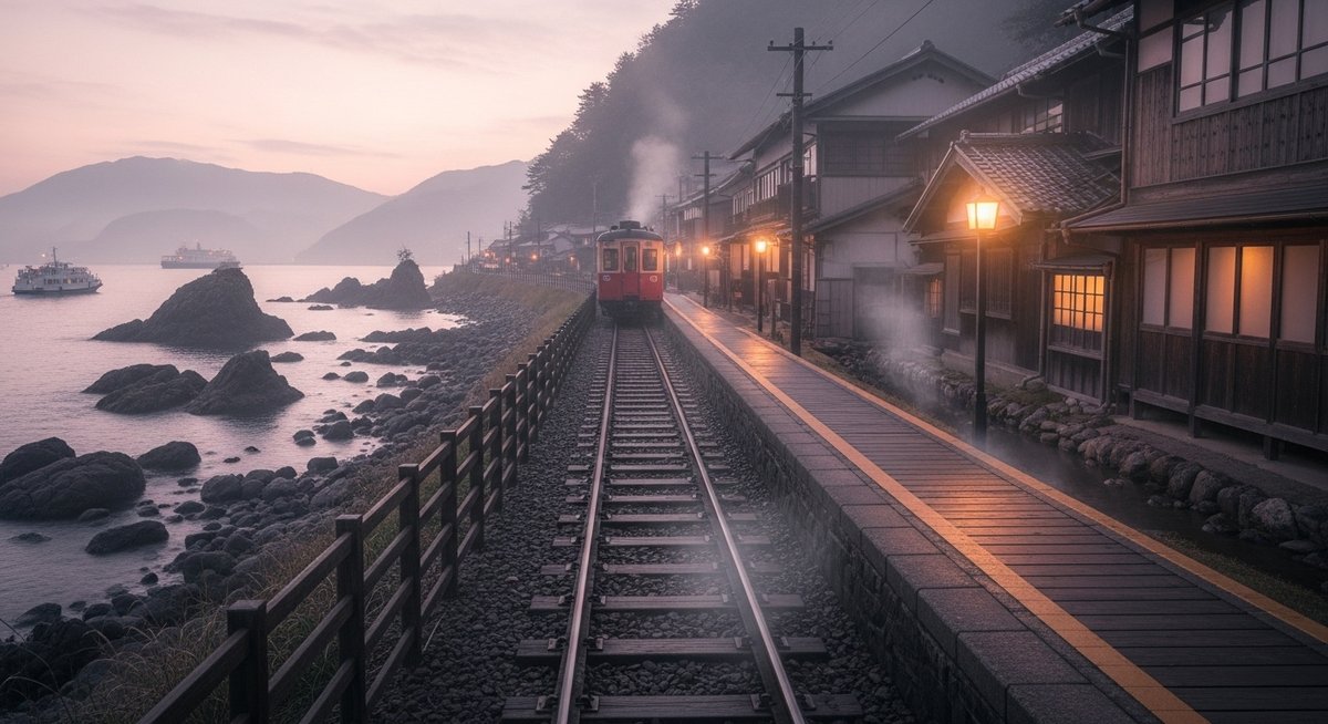 別府湾周辺では温泉街の生活感と海辺の光景が混ざり合っています。海に続くように見える線路の断片や、海風に揺れる風景が映画の場面に似る部分があります。観光資源が多いため、線路見学と合わせて他の楽しみ方ができる点も魅力です。