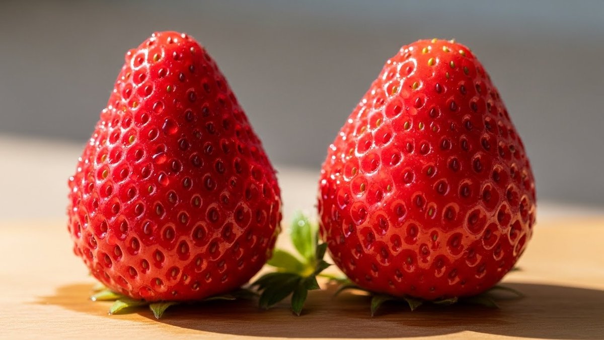 果形は品種の個性を示します。スカイベリーはやや大ぶりで丸みのある整った形が多く、見た目の印象が安定しています。とちあいかは形に幅があり、個性的な形状のものが混在することがあります。